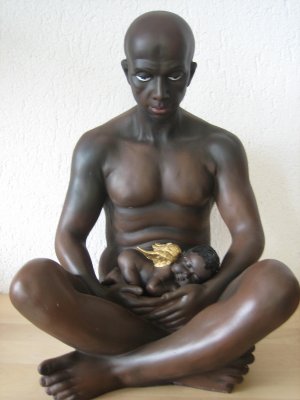 Mann dunkel mit Engeli im Schoss, H24cm