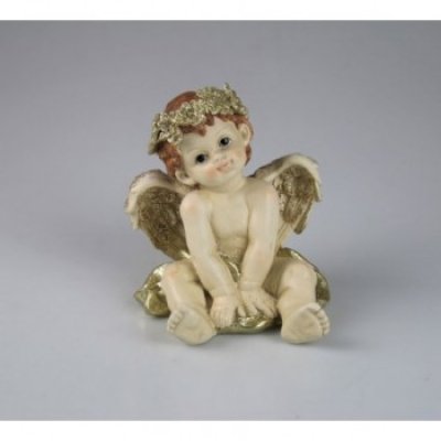 Resin-Engel crem m. Blüte sitzend H14cm B11cm