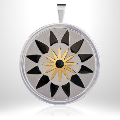 AMARU - Heilung, Weisheit, Drache, Schlange, Transformation Vorderseite: 925 Silber Teils vergoldet (18 carat Gelbgold), teilweise geschliffen Rückseite: Edelstahl Strahlen veredelt mit Gun-Metal-Beschichtung, 35mm, Stein: geschliffener Onyx Kernelement: Hightech-Reflektor-Folie von delin bionics ® Zen Collection eine neue Dimension wirkungsvoller Medaillons Schweizer Technologie Zauberhafter Schmuck für ein harmonisiertes und vitalisiertes Energiefeld (Biofeld). Für mehr Vitalität, Regeneration, Balance und Wohlbefinden. Das Herzstück dieser Medaillons: der Reflector Patch Im Kern des Medaillons: der Reflector Patch, eine Hightech-Reflektor-Folie mit verschiedenen organischen und anorganischen Komponenten, veredelt mit der leistungsstarken, quantenbasierten S.R.A. technology von Swiss Akamani. Sie unterstüzt die Kommunikation der Zellen im Körper – ganz ohne Chemikalien, Magnete oder zusätzliche Frequenzen. Ein sanfter und effektiver Weg zu mehr Wohlbefinden. Biophotonen – lebenswichtiges Licht Die Biophotonen-Technologie basiert auf altem Wissen von Licht und Energie und den fundamentalen Prinzipien der Natur. Körperzellen kommunizieren miteinander über feine Lichtimpulse: die Biophotonen. Licht ist Informationsträger und ordnende Kraft. Ob Mensch, Tier oder Pflanze: Pro Sekunde gibt jede lebende Zelle über 100.000 Lichtimpulse ab. Je geordneter (kohärenter) das Licht und die Struktur des Wassers im Körper des Menschen, desto gesünder sein Organismus. Reflector Patch Die Abstrahlung der körpereigenen Biophotonen aktiviert den Reflector Patch. Dieser reflektiert kohärentes Licht mit der jeweiligen Wellenlänge, welches über die Meridiane und das vegetative Nervensystem in den Körper gelangt und eine Anregung der Selbstheilungskräfte bewirkt. Durch die Reflektion des kohärenten Lichts erfolgt eine Eigenstimulation der Körperzellen. Selbstheilungsprozesse auf verschiedenen Ebenen setzen ein oder werden beschleunigt. Die Wirkung zeigt sich unterschiedlich – nämlich genau dort, wo das menschliche System Ausgleich braucht. Die ZEN Collection ZEN bedeutet «die Einheit allen Seins» und ist im Kern eine Kultur der Stille. ZEN steht auch für Ausgeglichenheit, Einfachheit, schlichte Eleganz, Natürlichkeit und innere Verbundenheit mit der Natur. Auf dieser Philosophie basieren die Medaillons der ZEN Collection. Die ZEN Collection steht für Lifestyle-Produkte erster Güte. Die Medaillons wurden von einem innovativen Schweizer Unternehmen entwickelt, mit Liebe gestaltet und mit grösster Sorgfalt veredelt.Kunden Rezensionen: