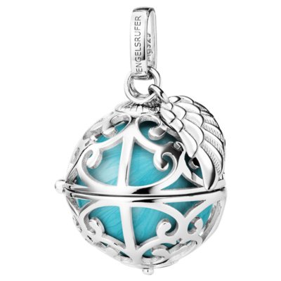 Engelsrufer silber rhodiniert, Klangkugel M 20mm türkis